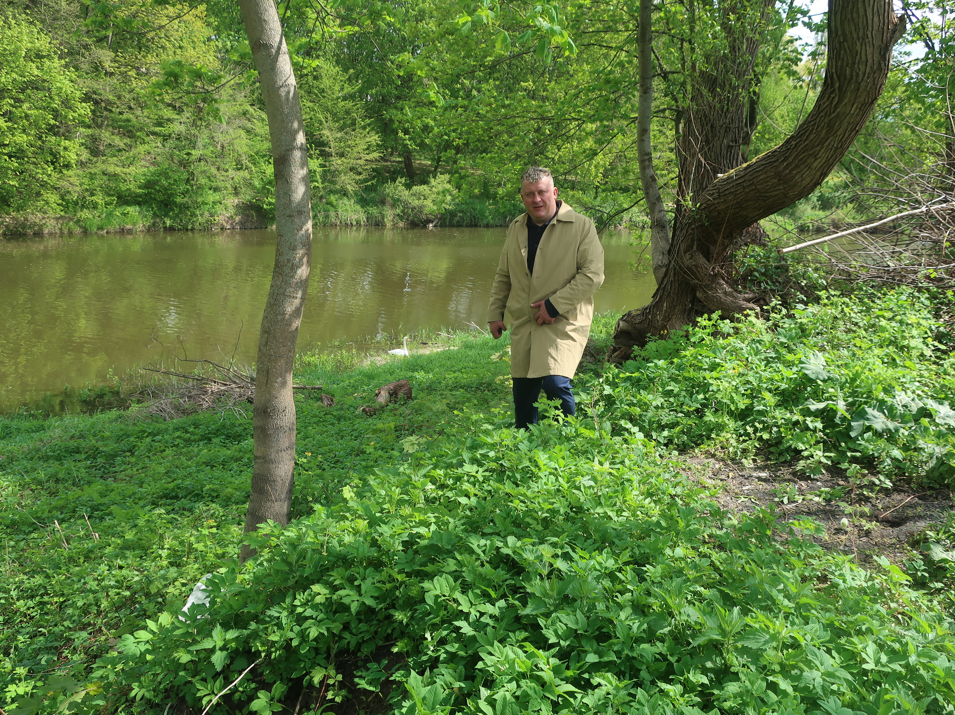 Здесь уже началась опилова деревьев, а дальше будут проложены пешеходные и велосипедные дорожки и вдоль них будет установлено уличное освещение. То есть всю набережную приведем в порядок. А для этого мы готовы организовать и выйти на субботник.
